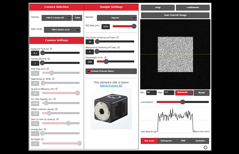 When using a camera for industrial or research applications, it is necessary to select a camera based on various conditions such as the wavelength and light intensity of the image to be captured. We offer the "Camera simulation lab", a tool that allows users to intuitively compare the differences in imaging results due to camera performance while checking the simulated images.