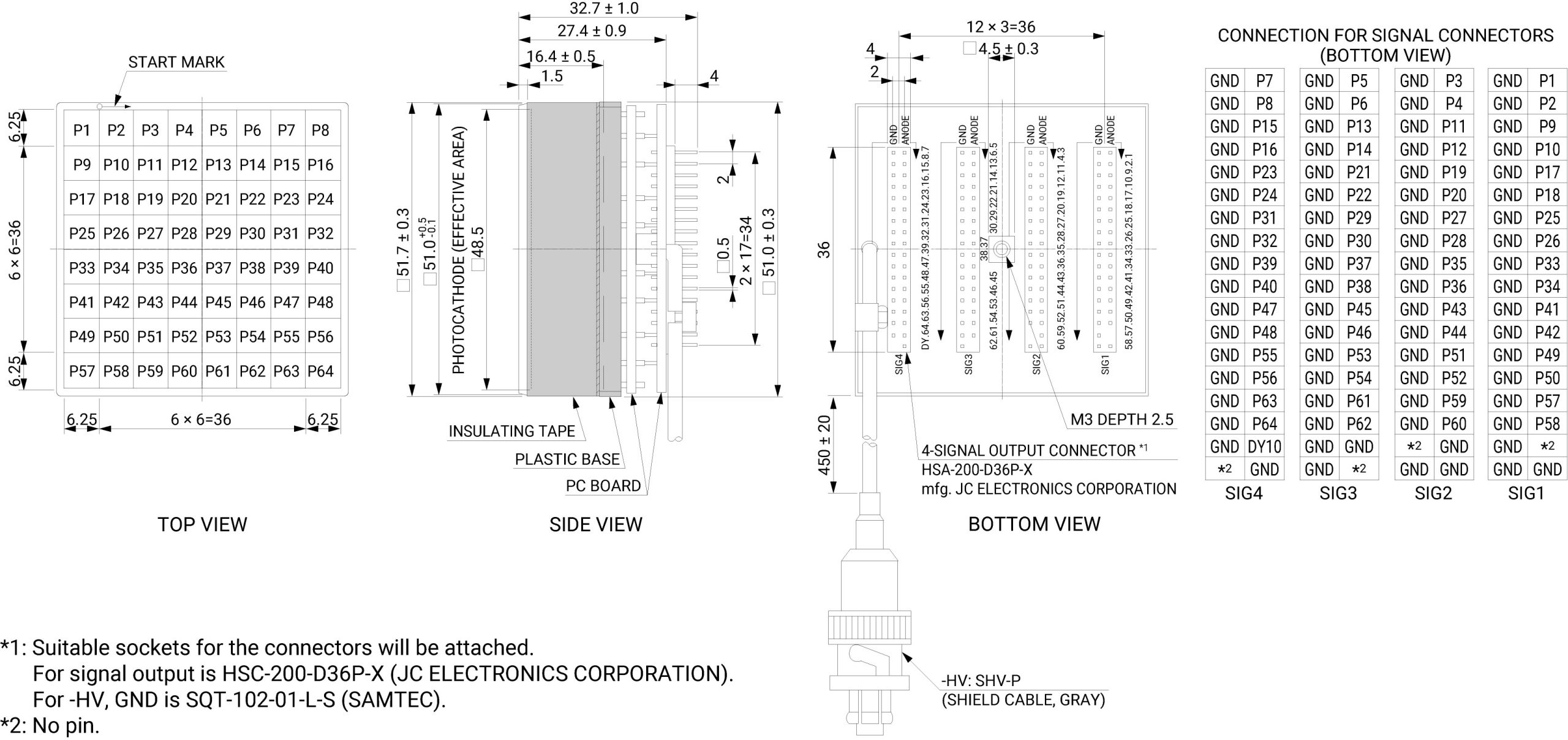 52 mm x 52 mm PMT assembly, Built-in PMT : R12699-00-M64